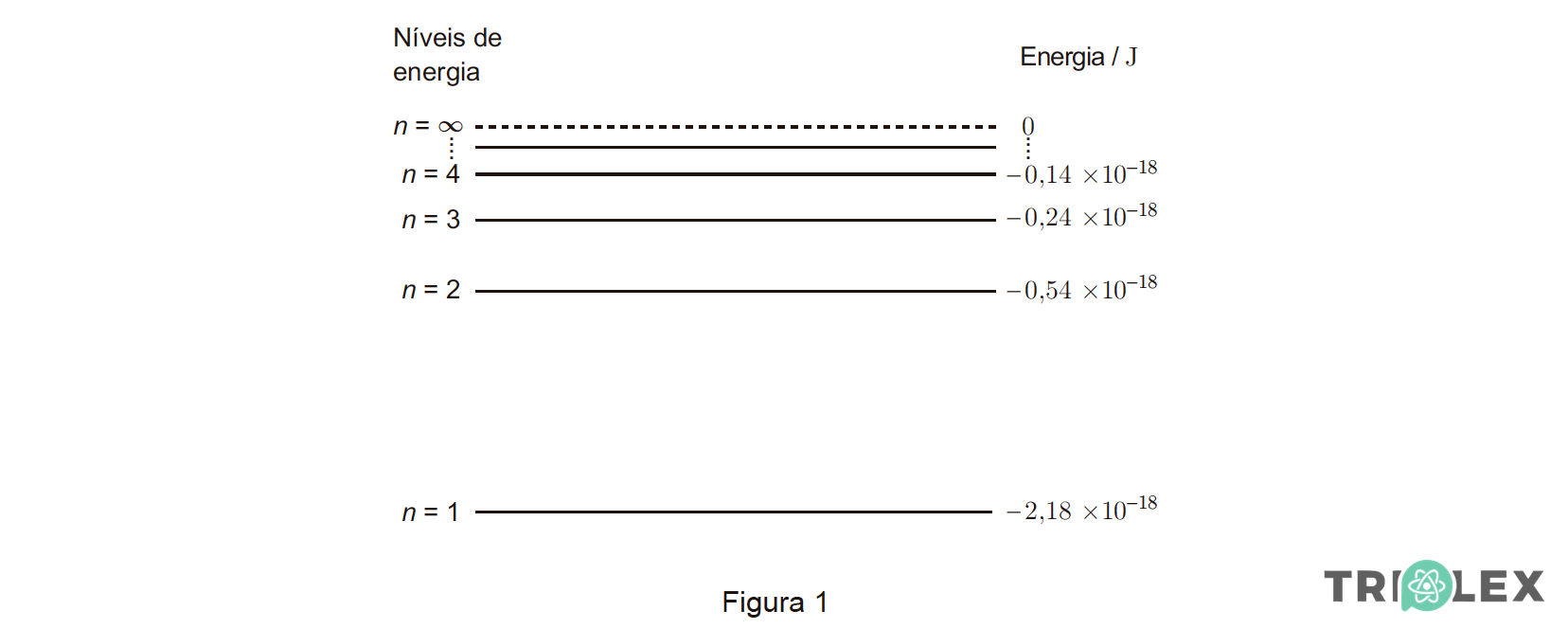 A Figura 1 representa um diagrama de níveis de energia do átomo de hidrogénio.