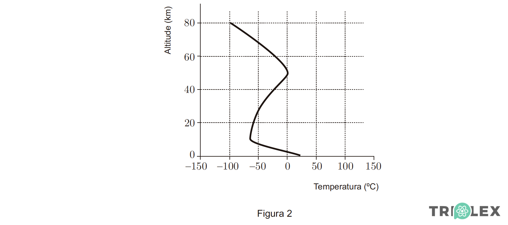 ⇒ De acordo com o gráfico, a temperatura atmosférica para a altitude de 10 km terá de estar compreendida entre – 100 ºC e – 50 ºC.