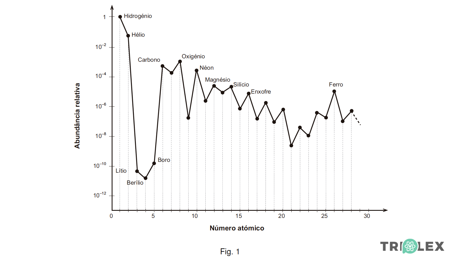 1.1. O gráfico da figura 1 representa as abundâncias relativas de alguns elementos no Universo, tomando como referência o hidrogénio.