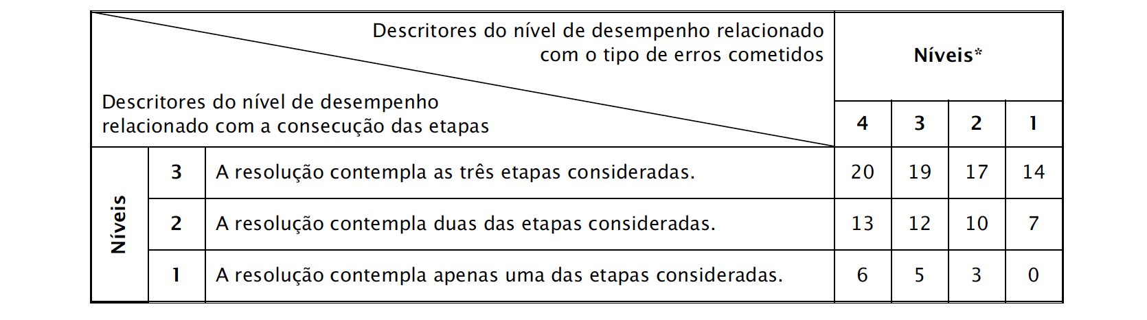 A classificação da resposta a este item é feita em função do enquadramento da mesma num dos níveis de desempenho, de acordo com a tabela seguinte: