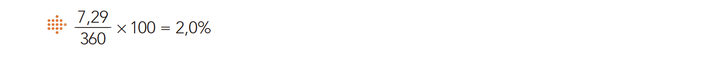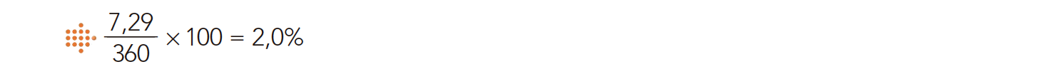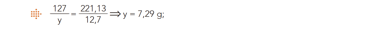⇒ Calcula a massa correspondente (m = 7,30 g) e expressa o resultado em percentagem (m/m) (2,03%).