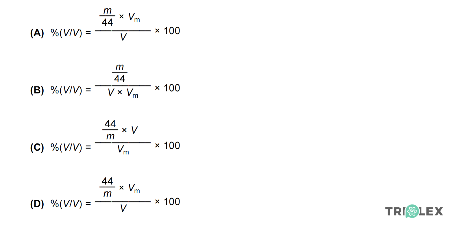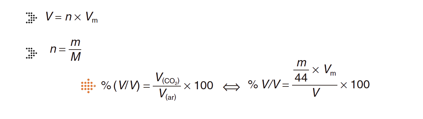 Seleccione a alternativa que permite calcular a percentagem em volume de dióxido de carbono no ar atmosférico.