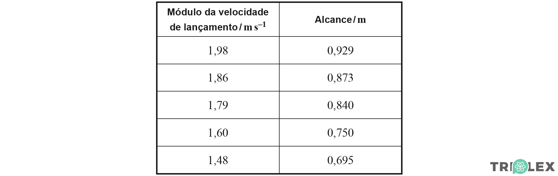 Para cada um desses conjuntos de ensaios, determinaram o módulo da velocidade de lançamento da esfera (módulo da velocidade com que a esfera passava na posição B) e o respetivo alcance.
