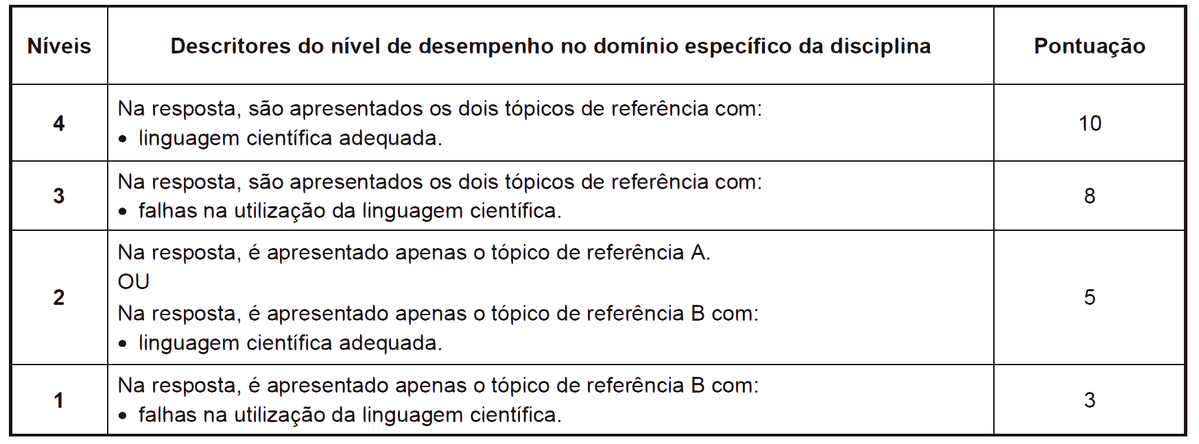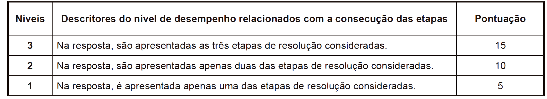 A resposta a este item deve ser enquadrada num dos níveis de desempenho relacionados com a consecução das etapas, de acordo com a tabela seguinte.