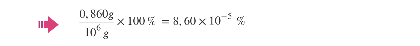 ⇒ 0,860 ppm em massa significa 0,860 g de HCN por cada 106 g de ar, o que expresso em percentagem é: