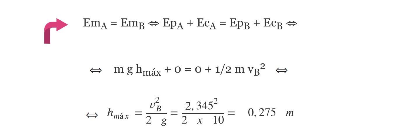 Como de A para B se desprezam as forças dissipativas há conservação da energia mecânica (a reação normal não realiza trabalho).
