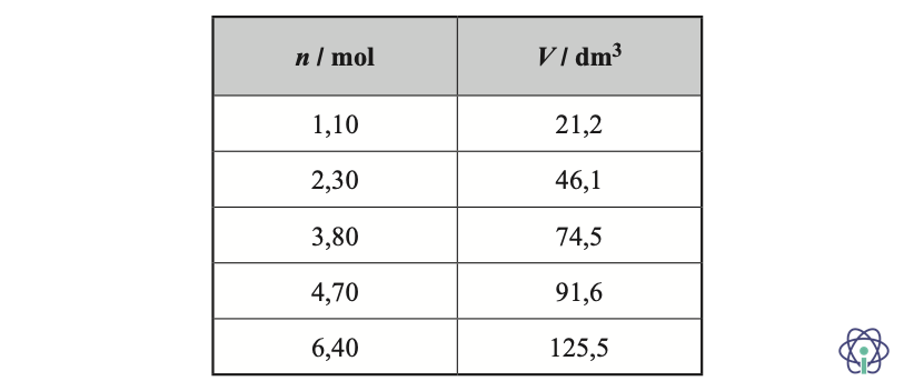 🛑   V = n x Vm , o declive da reta, 19,6 dm3 mol−1, corresponde ao volume molar de N2O (g) nas condições de pressão e temperatura da experiência.