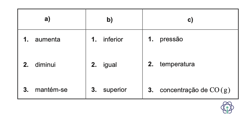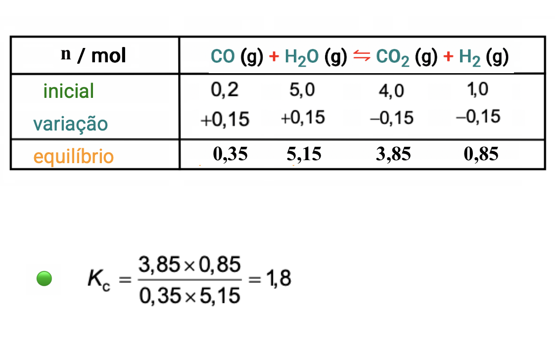 3. A reação entre o monóxido de carbono, CO, e a água, em fase gasosa, permite obter di-hidrogénio, num equilíbrio traduzido por