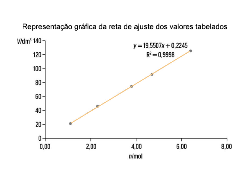 o volume molar do N2O (g) obtido a partir da reta de ajuste é 19,6 dm3 mol-1;