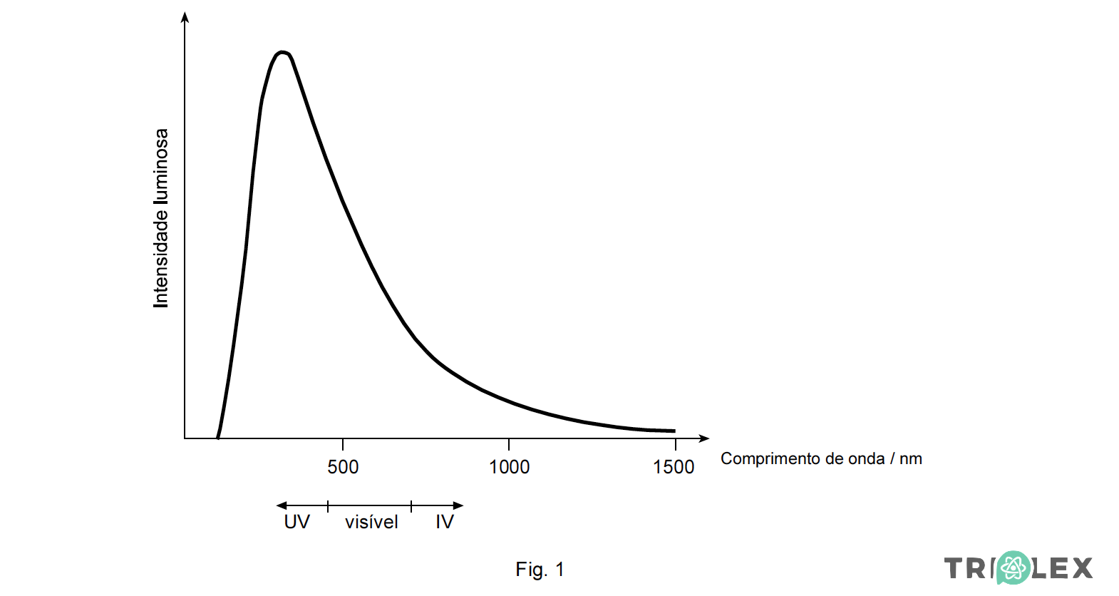 O gráfico da figura 1 representa a intensidade da radiação emitida por uma estrela, a determinada temperatura, em função do comprimento de onda da radiação emitida.
