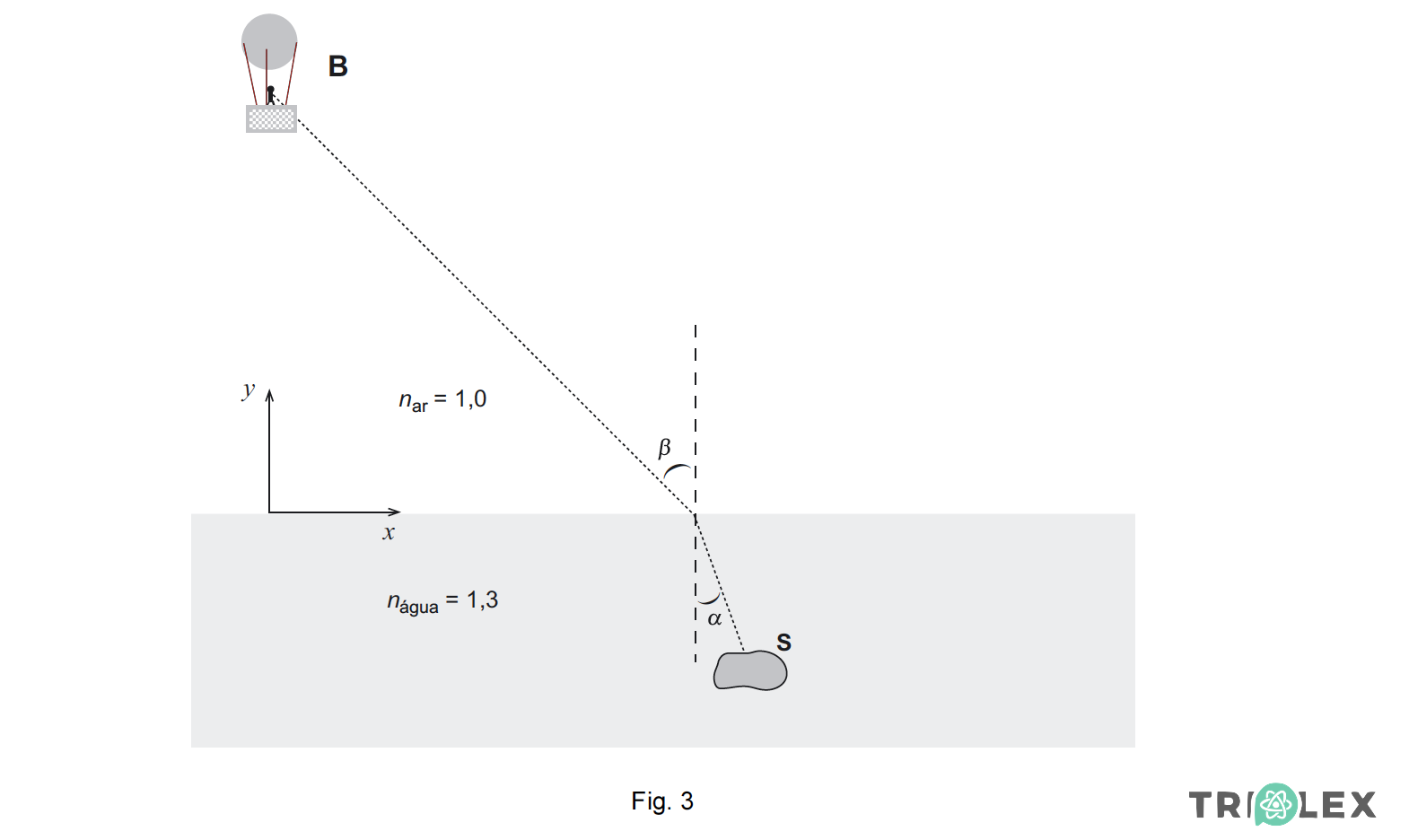 O índice de refração do ar é nar = 1,0, e o índice de refração da água é nágua = 1,3.