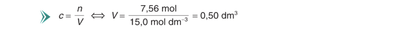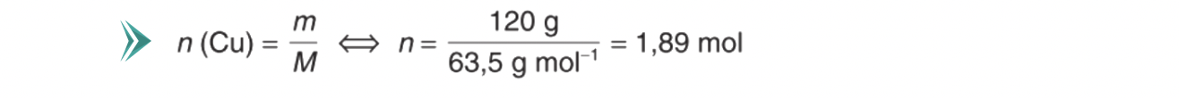 ⇒ Determina a quantidade de HNO3 suficiente para reagir com o cobre presente na amostra (n = 7,55 mol).