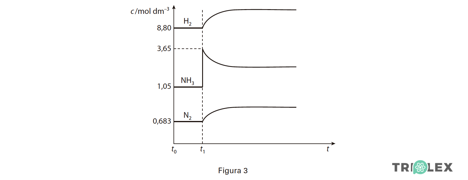 5.1. A Figura 3 apresenta um gráfico que traduz a evolução, ao longo do tempo, das concentrações das espécies envolvidas na reação de síntese do amoníaco, à temperatura de 350 °C.