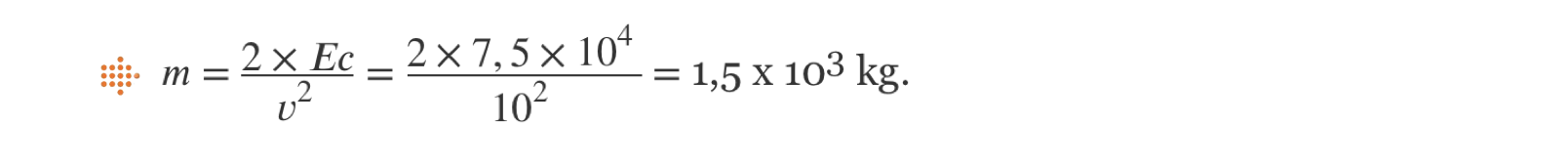 A energia cinética é Ec = ½ m v2 = 7,5 x 104 J.