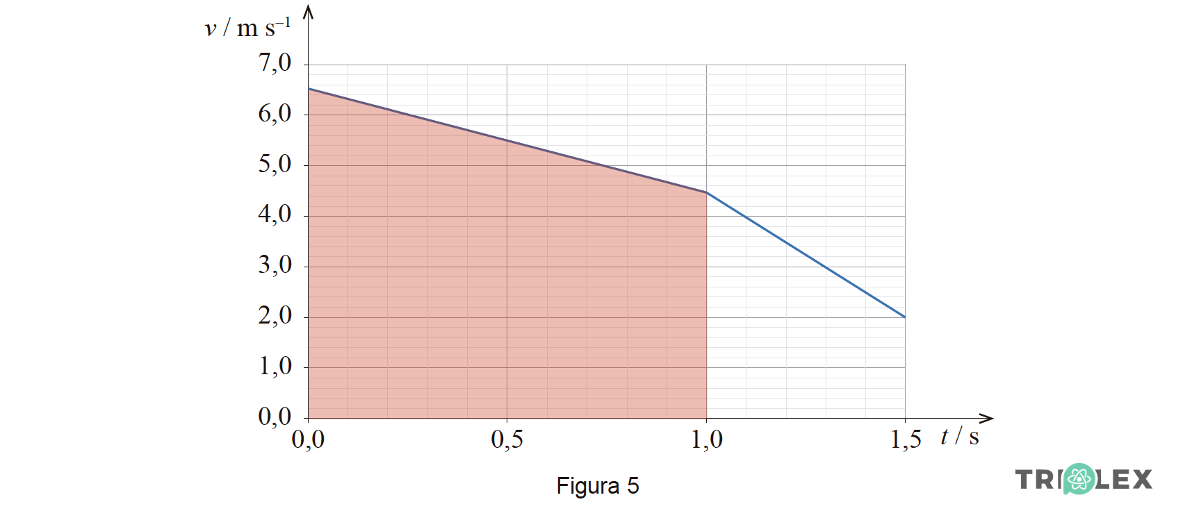 O automóvel tem aceleração constante, logo, o módulo da velocidade aumenta proporcionalmente com o tempo. A área entre a linha do gráfico e o eixo dos tempos até ao instante, td, em que ocorre a colisão é a distância percorrida pelo automóvel sobre a rampa: