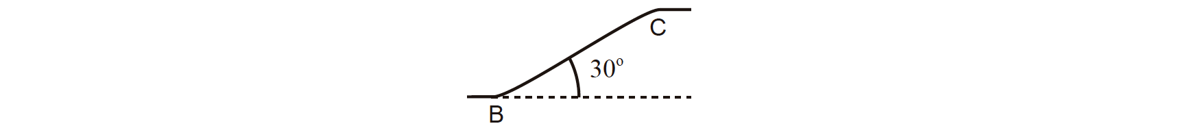 A ciclovia tem um troço horizontal, entre A e B, e um troço de inclinação constante, entre B e C.