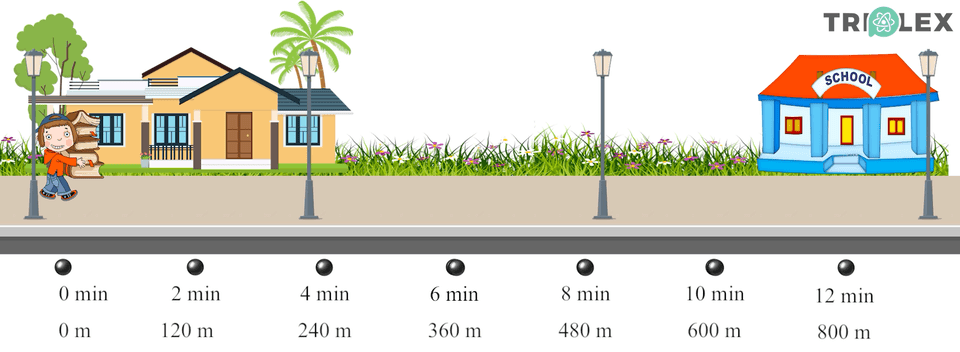 8. A Maria sai de casa às 7 h 52 min e vai para a escola, seguindo uma trajetória retilínea.
