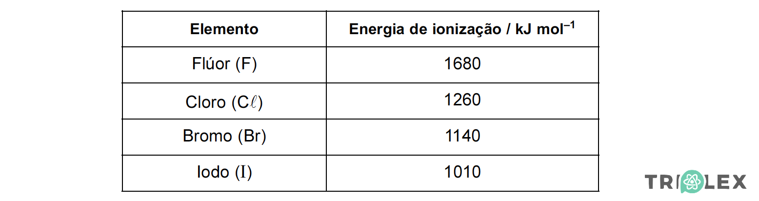 4.3. A tabela seguinte apresenta os valores da primeira energia de ionização dos elementos flúor, cloro, bromo e iodo.