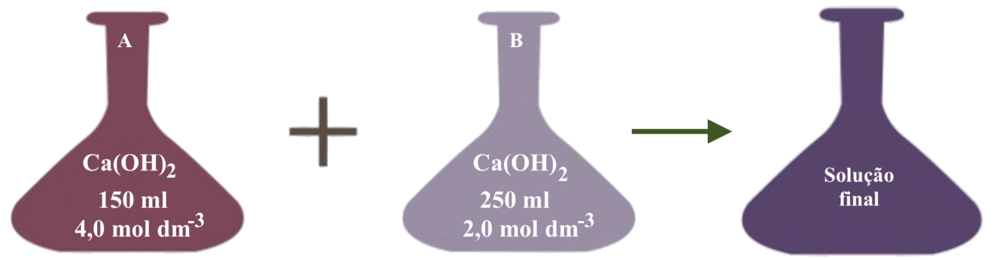 Verifica-se que [OH–] = 2 [Ca(OH)2] ➔ [OH–]= 2 x 2,75 ⇔ [OH–] = 5,5 mol dm-3