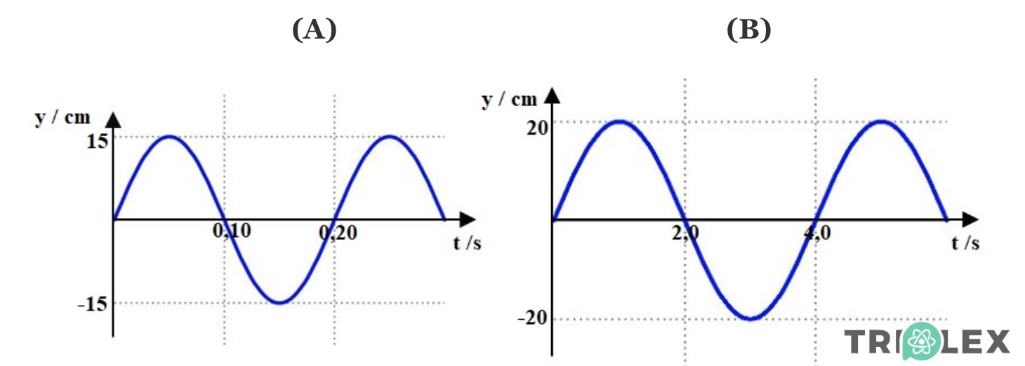 ⇒ Contudo, a onda A apresenta o dobro da amplitude.