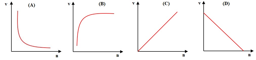 2. Qual dos gráficos seguintes traduz os valores da velocidade de propagação de uma radiação monocromática em função do índice de refração, num determinado meio?