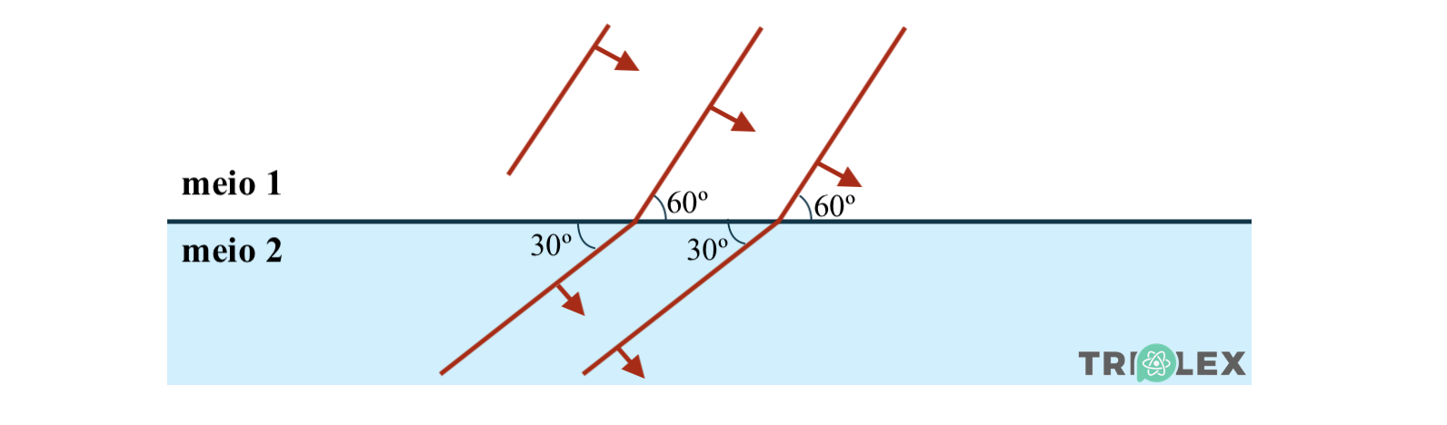 Ao passar para o líquido, o ângulo altera para 30º.