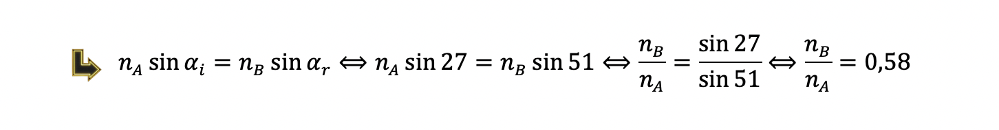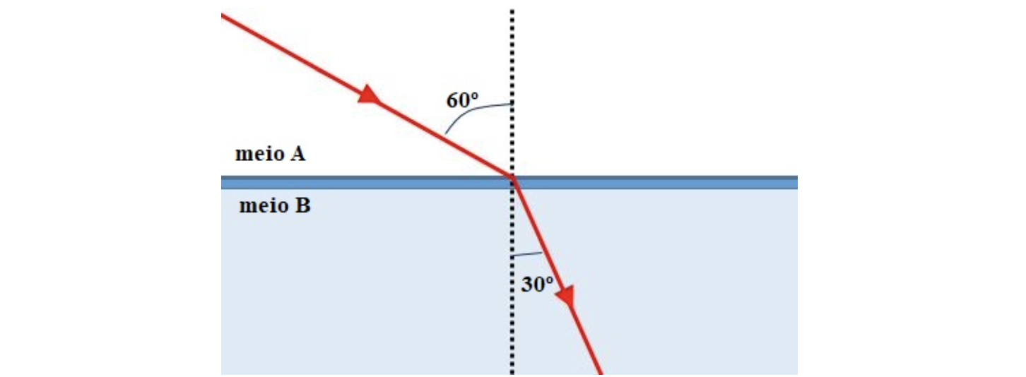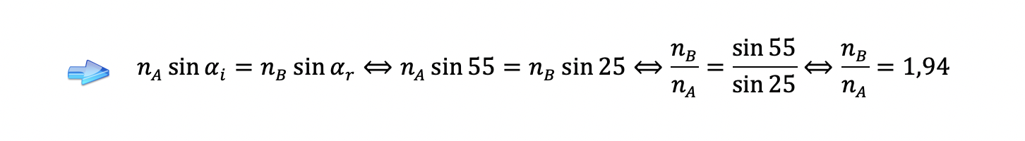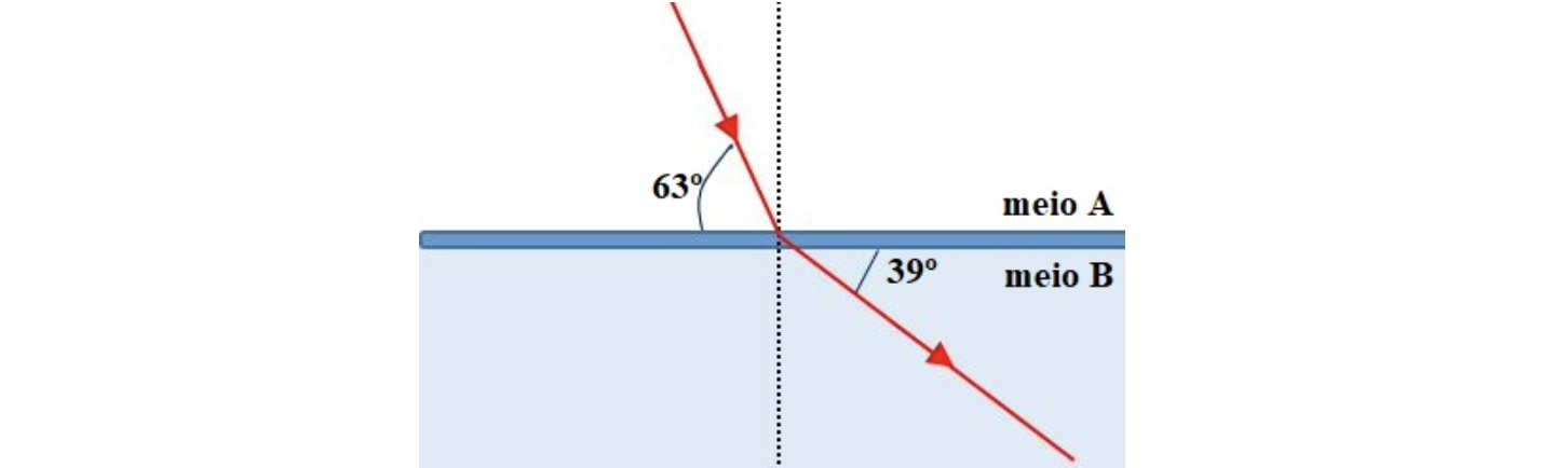 16.2 Calcula o índice de refração do meio B relativamente ao meio A.