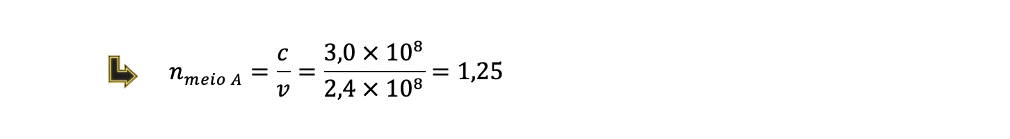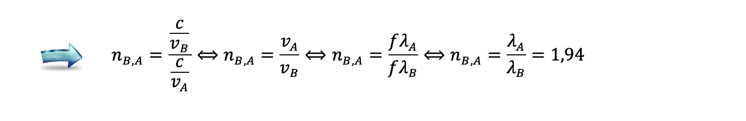 9.3 Sabendo que a onda eletromagnética em causa se propaga no meio B a 2,45 x 108 m s-1, determina o índice de refração nesse meio.