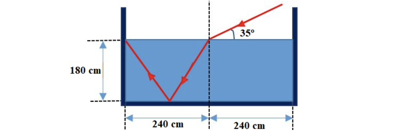 11. Um feixe de luz monocromática propaga-se no ar, incide na superfície da água de um tanque, originando dois novos feixes: um refletido e outro refratado.