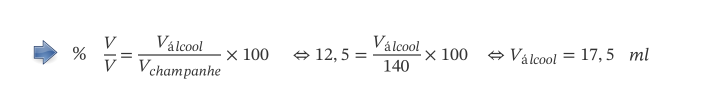16.3 Calcula a percentagem, em massa, do álcool etílico no champanhe. Considera que a massa volúmica do champanhe é 0,97 g/ml.