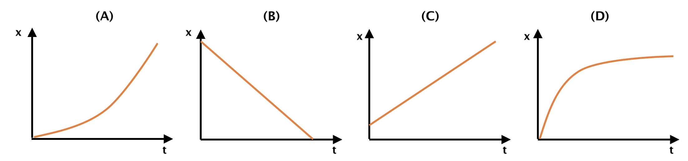 15. Os esboços dos gráficos posição-tempo seguintes dizem respeito a quatro movimentos retilíneos segundo a direção do eixo dos xx.