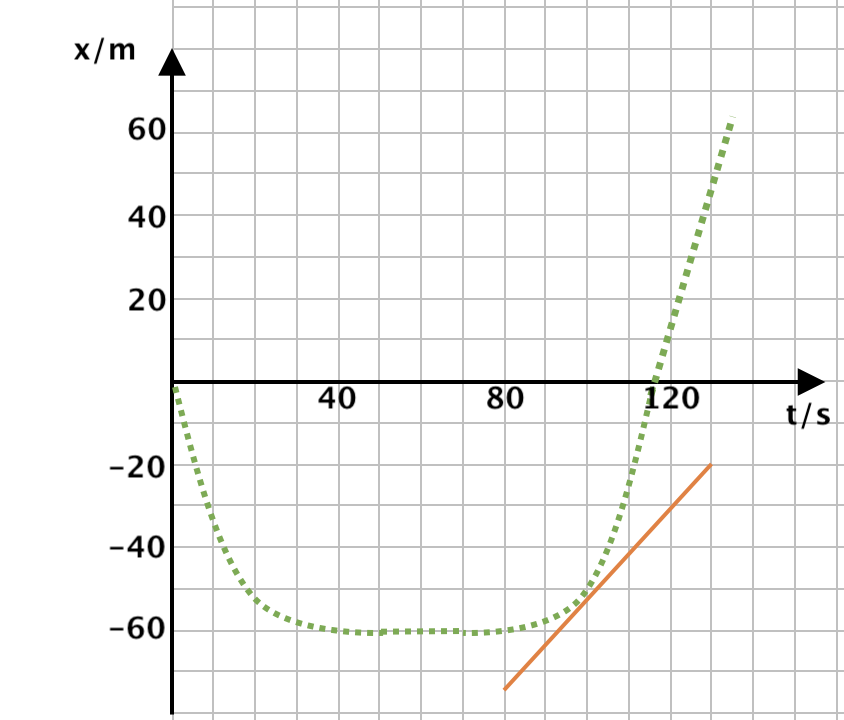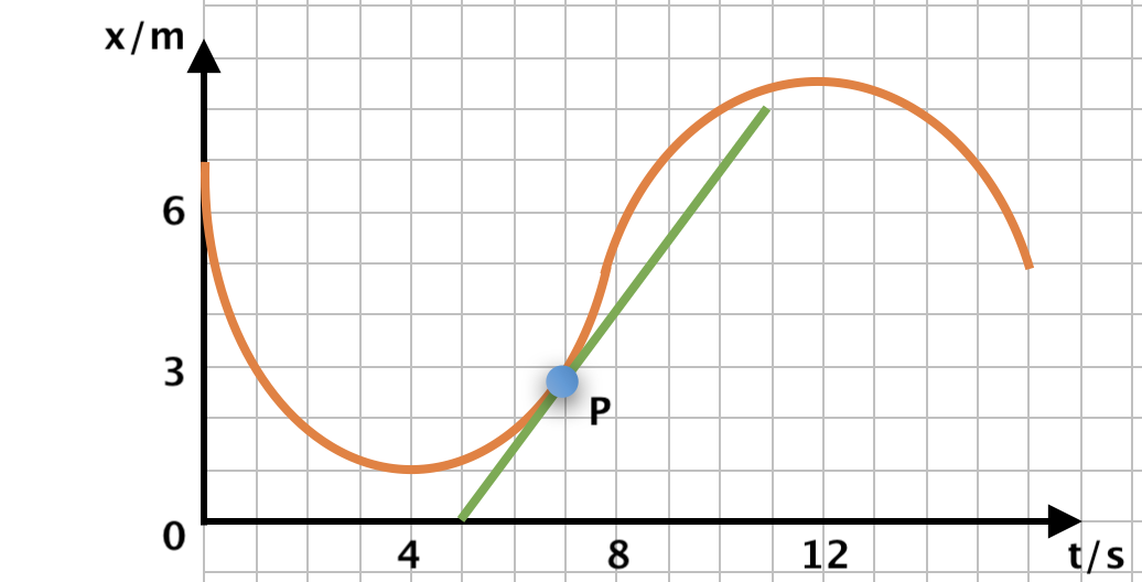 2.2 A componente escalar da velocidade da partícula no instante t = 9,0 s é igual ao declive da reta tangente à curva, nesse instante. Considerando dois pontos dessa reta para determinar o declive, tem-se: