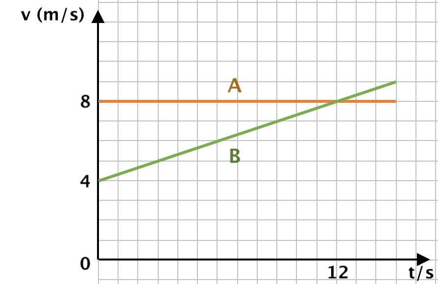 E. No intervalo de t = 0 s até t = 12 s, o corpo A percorre 24 m a mais do que o corpo B.