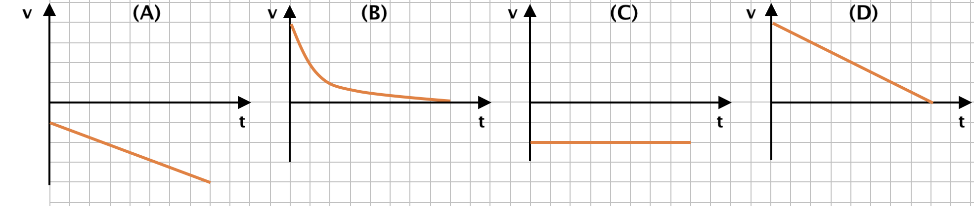 15.2 (A) e (B), pois, nestes esboços de gráficos, as retas tangentes à curva vão tendo sucessivamente declives menores, em módulo. Logo, o módulo da componente escalar da velocidade está a diminuir e o movimento é, portanto, retardado.