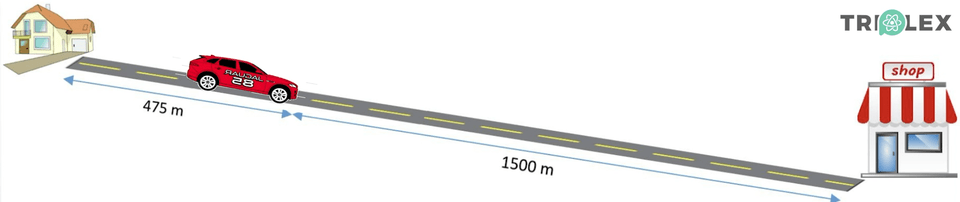 Exemplo: Um carro inicia a sua corrida a 475 m de casa em direção à loja.