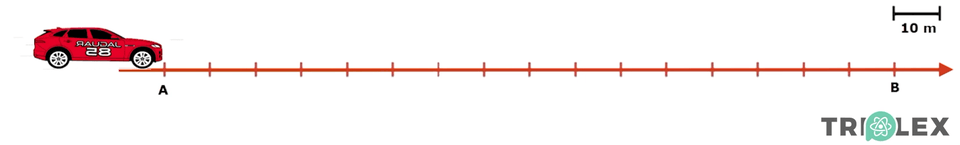 O automóvel parte de A no instante 0 segundos e atinge B aos 8 segundos.