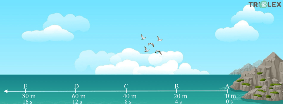 Observemos novamente o movimento do Jet ski e verificamos os instantes de tempo correspondentes a cada posição.