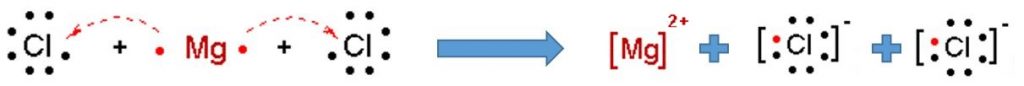 Durante este processo, o magnésio perdeu eletrões e o dicloro ganhou eletrões.