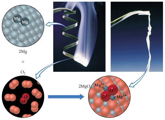 A oxidação do magnésio e a redução do oxigénio produzem-se simultaneamente.
