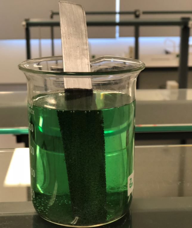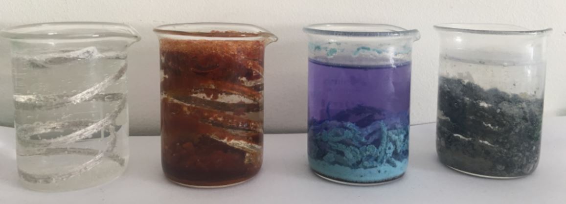 Considere que uma solução de sulfato de cobre (II), CuSO4 (aq), de cor azul característica se introduz-se nessa solução uma placa metálica de zinco, Zn (s).