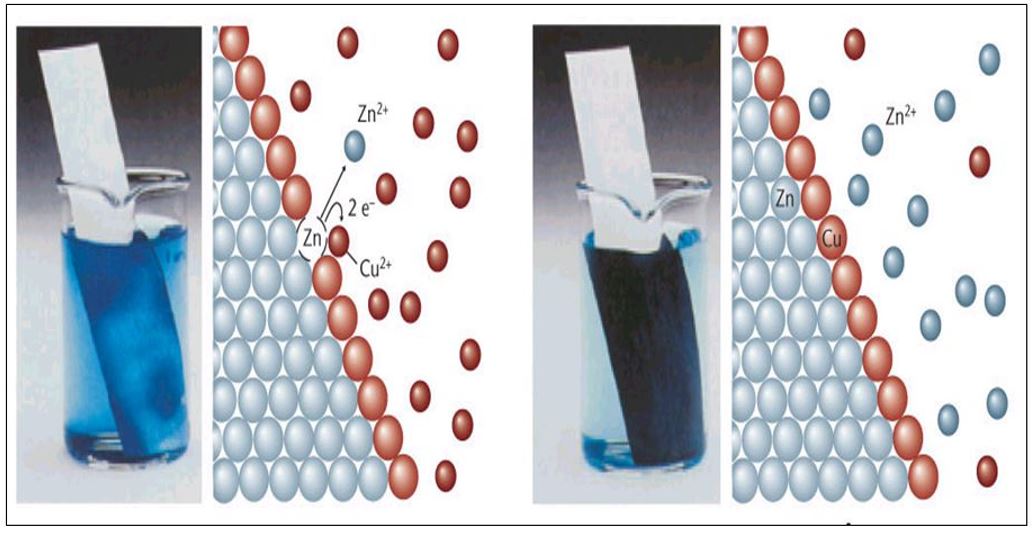 - São também exemplos de reações de oxidação-redução as reações entre um metal e um ião de outro metal em solução.