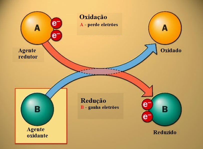 Por sua vez, o oxigénio que sofre a redução ganha eletrões, ou seja, a redução é um processo em que há ganho de eletrões.