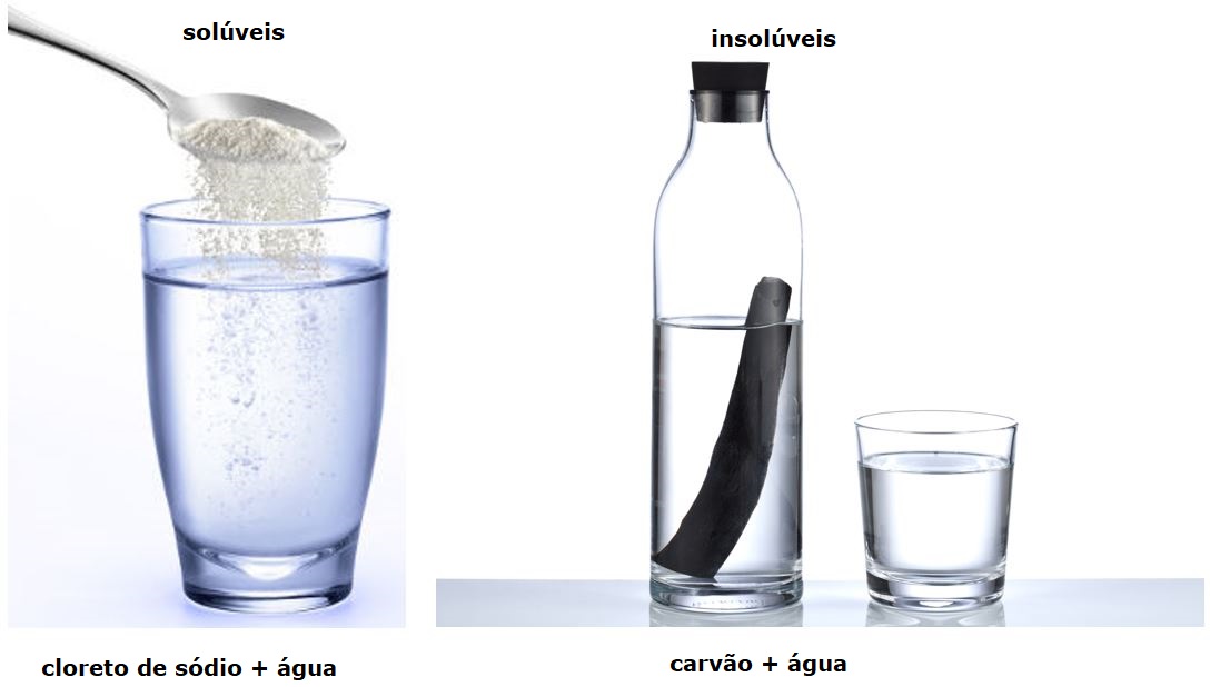 - Materiais que não se dissolvem (insolúveis)