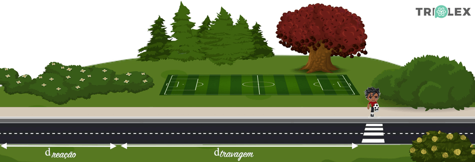 - Durante o tempo de travagem, a velocidade diminui até parar (o condutor está a travar).